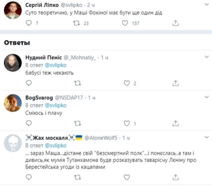 В комментариях пользователи шутят, что "у Фокиной должен быть еще одни дед".