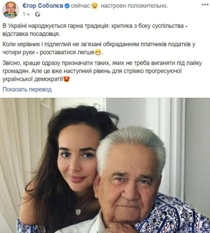 Бывший народный депутат, общественный деятель и журналист Егор Соболев отметил, "что в Украине рождается хорошая традиция: критика со стороны общества - отставка чиновника".