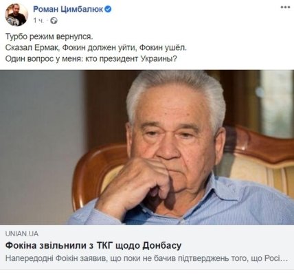 Журналист Роман Цимбалюк комментирует увольнение политика и вспоминает заявление Ермака: "Фокин должен уйти, Фокин ушёл. Один вопрос у меня: кто президент Украины?"