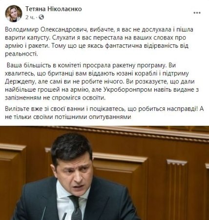 "Слушать я вас перестала на ваших словах об армии и ракеты. Потому что это какая-то фантастическая оторванность от реальности", - написала она.