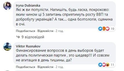 На вопрос, "будет ли это агитацией?", в "Слуге народа" отвечают, что "нет", потому что, во время проведения опроса не будет задействована какая либо партийная символика, а также все пройдет без призывов голосовать за "Слугу народа".