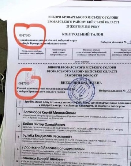 В Броварах "пронумерованные" бюллетени были напечатаны в типографии семьи кандидата "Слуги народа"