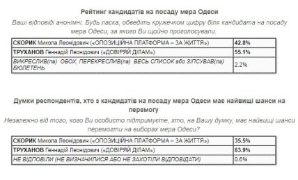 Так согласно его данным действующий глава Одессы заручился поддержкой 55,1% избирателей.