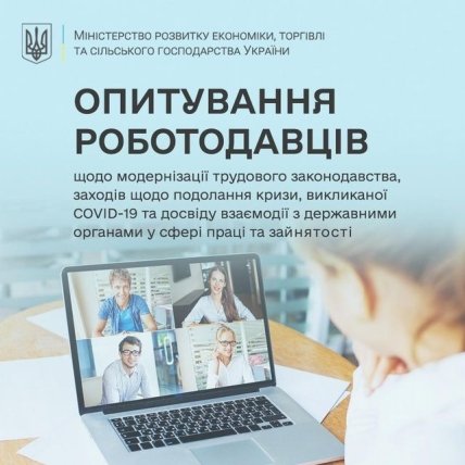 Министерство развития экономики, торговли и сельского хозяйства Украины проводит опрос среди владельцев и руководителей бизнеса относительно модернизации трудового законодательства, мер по преодолению кризиса, вызванного COVID-19, и опыта взаимодействия с государственными органами в сфере труда и занятости.