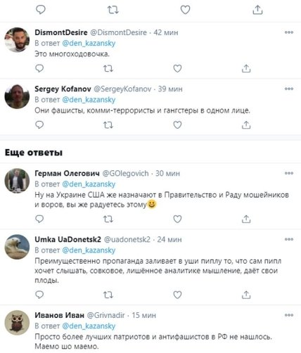 "В программе Скабеевой на канале "Россия 1" показали сюжет про финансовые пирамиды, в котором фигурировал один из ближайших соратников Пушилина - глава организации "Донецкая республика" Алексей Муратов. До войны Муратов вместе с Пушилиным занимались МММ", - написал Казанский в своем Твиттере.