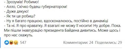По сюжету Ткача, среди "плюсов" Скичко, по мнению журналиста, президент Украины Владимир Зеленский нашел родство с Юрушевым, и то, что тот "бреется каждый день". Его место нардепа уже договорились отдать товарищу Юрушева, а Скичко напророчили должность министра в будущем.