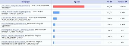 Мэр Доброполья Андрей Аксенов от партии "Порядок" окончательно победил на довыборах в Верховную Раду в Донецкой области – он получил 65,46% голосов (19949 избирателей).