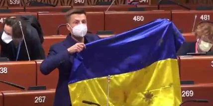 Как сообщалось ранее, во время своего выступления в ПАСЕ Гончаренко попытался показать флаг Украины, привезенный с Донбасса, однако президент организации Рик Дамс не позволил этого сделать.