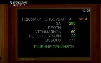 От "Слуги народа" "за" проголосовали 224 депутата, от группы "Партия "За майбутнє"- 15, от группы "Доверие" - 18, от внефракционных - 5.