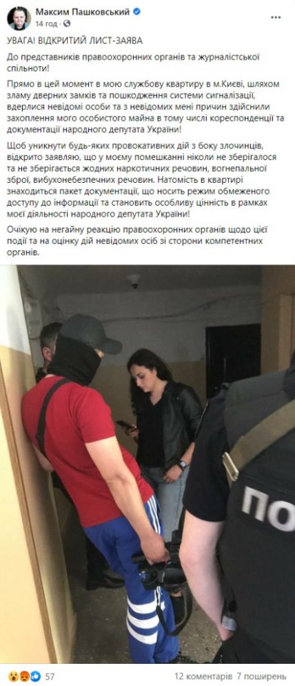 В пятницу, 28 мая, в квартиру народного депутата от "Слуги народа" Максима Пашковского, взломав замки в служебной квартире в Киеве, ворвались неизвестные.
