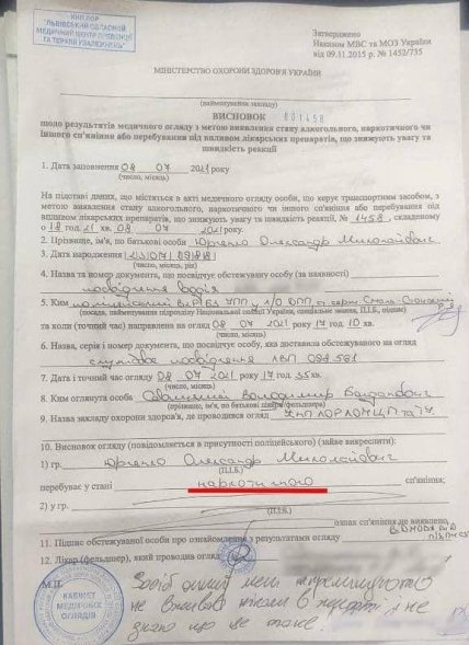 Как сообщалось, после ДТП Юрченко прошел медицинскую экспертизу, в ходе которой было установлено, что тот находился в состоянии наркотического опьянения. После этого против него составили админпротокол по части 1 статьи 130 КУоАП за вождение в состоянии алкогольного или наркотического опьянения. Санкция протокола предусматривает штраф от 17 до 51 тыс. грн с лишением водительских прав на термин от года до десяти лет.