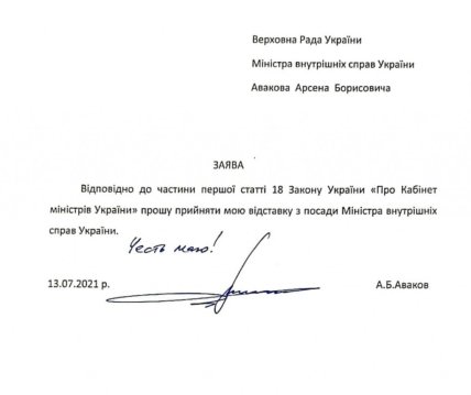 Там отмечается, что уже 15 июля Верховная Рада рассмотрит вопрос отставки Арсена Авакова.