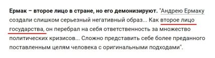 Бывшая спикер украинского лидера Владимира Зеленского Юлия Мендель в своей новой книге "Каждый из нас - президент" назвала главу ОП Андрея Ермака "вторым лицом государства".