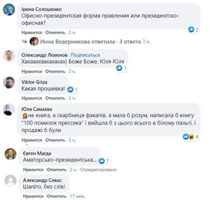 "Офисно-президентская форма правления или президентско-офисная?", "Не книга, а кладезь факапов", "Шапито - без слов!", - среди прочего, добавили в комментариях.