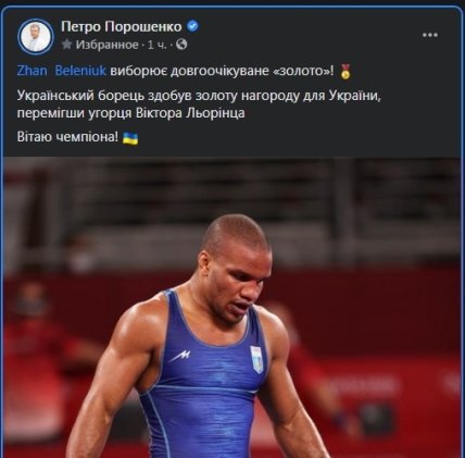 Не обошел своим вниманием победу Беленюка на Играх и пятый президент Украины, нардеп от фракции "Европейская солидарность" Петр Порошенко. Он ограничился констатацией факта победы борца и лаконичным "Поздравляю чемпиона!".