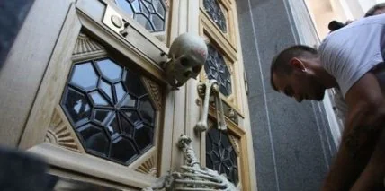 По замыслу протестующих, этот скелет - символ реинкарнированного законопроекта о мирных собраниях, который в 2008 году уже пытались рассматривать в Парламенте.