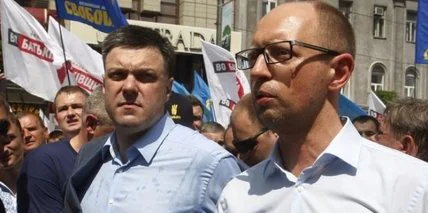 Яценюк и Тягнибок возглавили оппозиционный марш в Николаеве, Кличко опять нет.