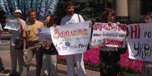 По его словам, сейчас протестующие с частично возобновленными плакатами и транспарантами опять вернулись к памятнику Шевченко, откуда вынуждены были "переехать" после решения суда о запрете акции в субботу. Д.Пилипец подчеркнул, что уведомление о проведении акции на "новом старом" месте было подано заблаговременно.
