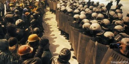 С Европейской площади через кордон Беркута прорвались провокаторы