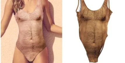 Ничего особенного, просто женский купальник с принтом мужской волосатой груди.