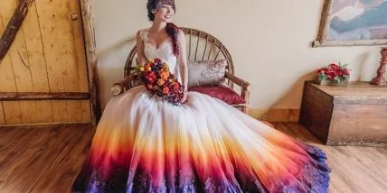Благодаря эффекту омбре любая свадьба станет яркой и неповторимой. Кроме того, градиентные тона — отличная находка для тех, кто не может определиться с одним единственным цветом для торжества.