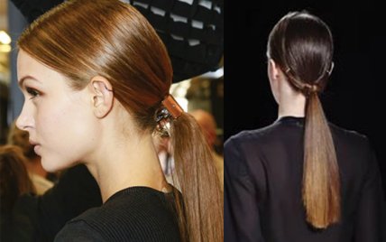 Это самая модная прическа сезона осень-зима 2017-2018 годов, и, как показано на фото, совершенно незамысловатая. Чтобы ее сделать, не требуется никаких особых навыков. Секрет успеха – идеально ровная поверхность волос и использование ярких стильных аксессуаров, разумеется, качественных.