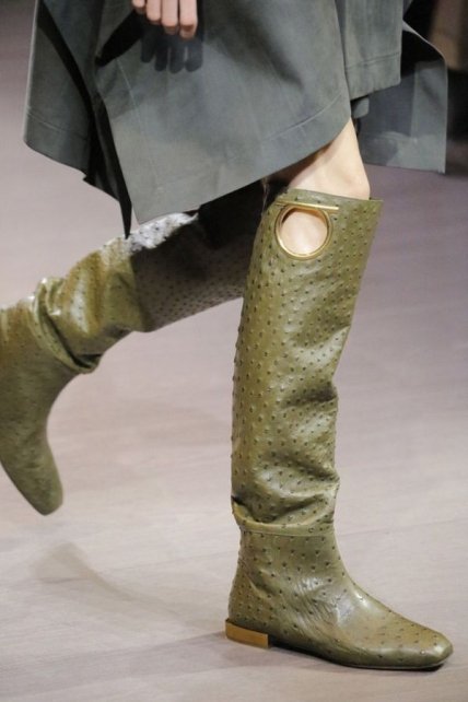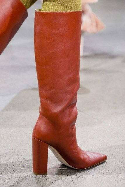 Выбирая повседневные осенние или зимние сапоги, откажитесь от головокружительной шпильки – дизайнеры настойчиво рекомендуют позаботиться о своем комфорте. Самый популярный каблук – удобный "столбик" любой высоты. Впрочем, оригинальный скошенный каблук и сапоги без каблука тоже в коллекциях есть. Примеры – у Fendi, Hermès, Valentino.