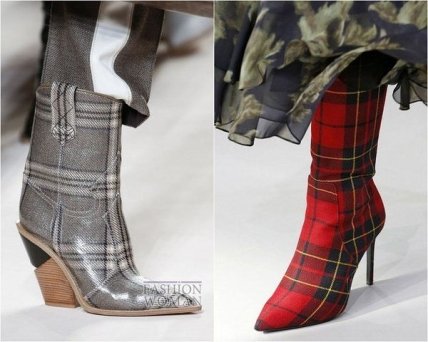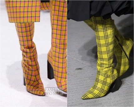 Клетка всех видов и цветов - обязательная деталь осенне-зимнего сезона 2018-2019. Она станет желанной гостьей на одежде, аксессуарах и, конечно же, обуви. Особо актуальной будет клетка сочных тонов. Ставку на яркие расцветки шотландки сделали Balenciaga, Marques'Almeida, Michael Kors. В их коллекциях встречались ярко-красные, лимонные, желто-оранжевые сапоги в клетку.