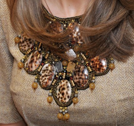 Летиция любит крупные колье или блузы с декором "под колье". Иногда королева также украшает себя крупными браслетами.