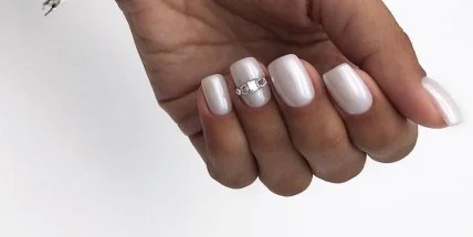Модный, но не вычурынй маникюр с особым дизайном на одном ноготке.