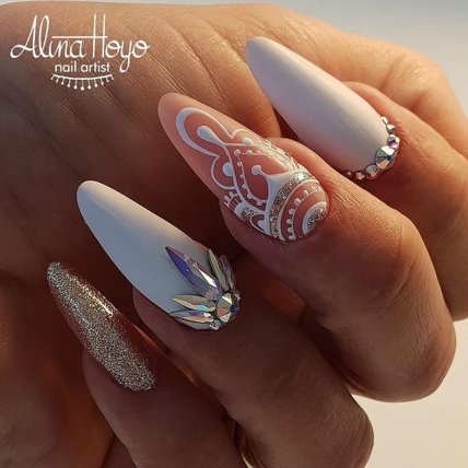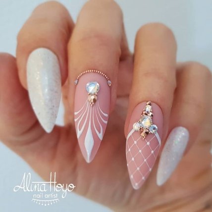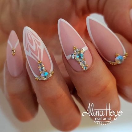 Они зрительно вытягивают пальцы и делают их чуть тоньше. Руки с маникюром на острые ногти выглядят женственно и грациозно. Чем длиннее ногтевая пластина, тем выигрышнее будет выглядеть общий дизайн.