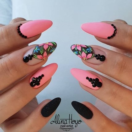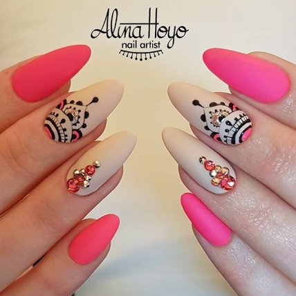 Маникюр гель-лаком на острых ногтях – это настоящий холст, на котором можно рисовать все что угодно и даже создавать объемные рисунки. Не менее эффектно будет выглядеть матовый маникюр, причем цвета могут быть светлыми или наоборот яркими и броскими.