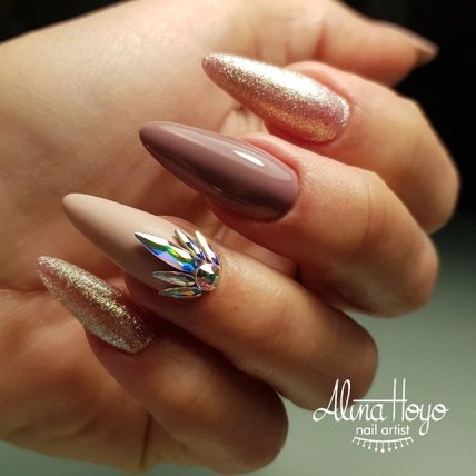Если вы желаете визуально удлинить свои пальчики, то ногти с острым кончиком – это то, что вам нужно.