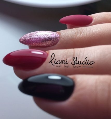 Цвет лака не играет большой роли, поскольку его будет почти не видно за слоем глиттера. Крепление блесток происходит путем опускания пальца в емкость с блестящими частицами.