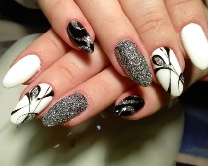 Маникюр 2018: стильный маникюр с блестками в разных тонах (Фото)