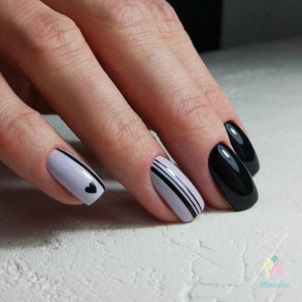 Прекрасно будет выглядеть полосатый маникюр со светлой базовой основой и нанесенными на нее контрастными полосками. Если вы хотите получить стильный и оригинальный маникюр, года дополните его различными стразами, камнями или всевозможными втирками.