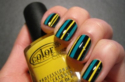 Полосатый маникюр с использованием вертикальных и горизонтальных полос