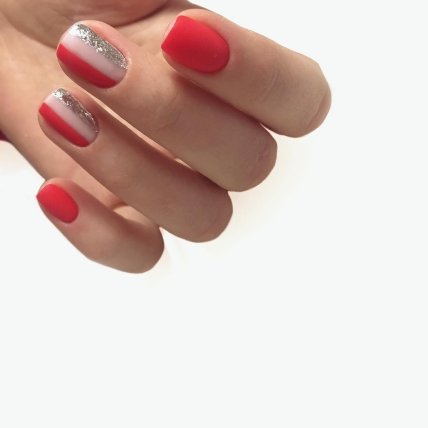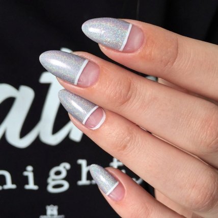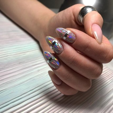 Такой маникюр выглядит современно и потрясающе красиво. Создавая праздничный вариант полосатого маникюра, сделайте полоски из различных блесток. Такие полоски на прозрачной основе будут смотреться ярко и привлекательно.