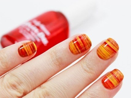 Актуальным становиться маникюр в яркую полоску, выполненный на прозрачной основе. Разнообразное дизайнерское решение такого маникюра придаст ноготкам насыщенный и превосходный вид.