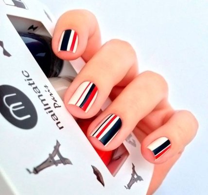 Полосатый маникюр подойдет на каждый день и для любого праздничного мероприятия.