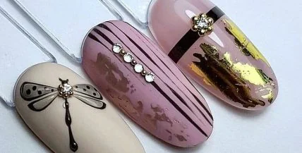 Интересный и стильный получается маникюр, если одновременно использовать несколько приемов. Модный маникюр с фольгой в сочетании с рисунками смотрится оригинально и современно. Можно прибегать к нанесению на гель-лак росписи и фольги, дополнить графическими мотивами или наклейками слайдерами. В совокупности это позволяет в домашних условиях получить непревзойденный дизайн с фольгой.