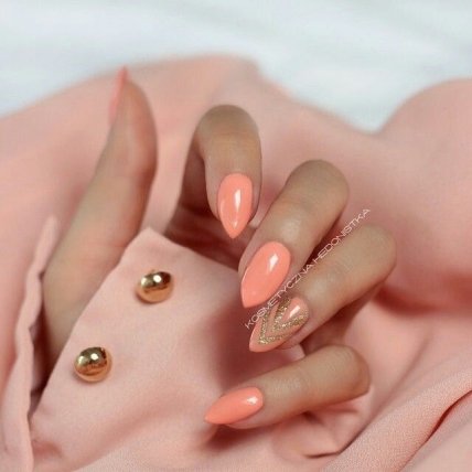 Маникюр кораллового цвета в стиле минимализм останется актуальным как минимум еще пару лет. Он очарователен и не перегружает образ. Отлично смотрится на коротких ногтях.