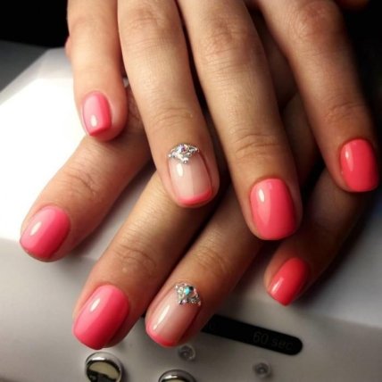 Если вы любите лаконичность, но при этом хотите немного уйти от классики, то маникюр гель-лаком может быть выполнен в технике френч. В этом случае кончик выделяется ярко коралловым гель-лаком. Также его можно дополнить другими элементами, которые обычную классику превратят в настоящий шикарный маникюр, подходящий для светских и праздничных мероприятий. Самые яркие варианты продемонстрированы на фото.