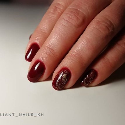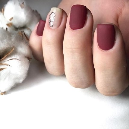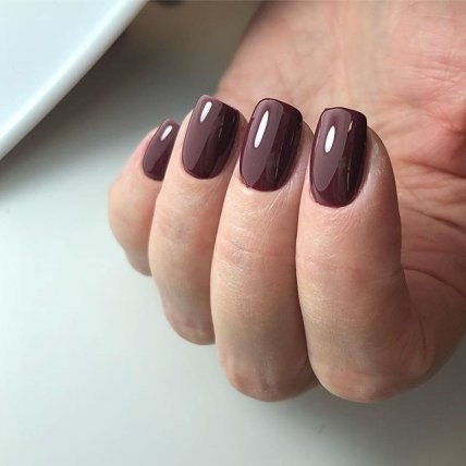 Однотонное покрытие гель-лаком в бордовом цвете: