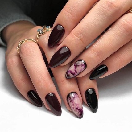 Маникюр в черном цвете или в темных оттенках, с дизайном или в однотонном покрытие:
