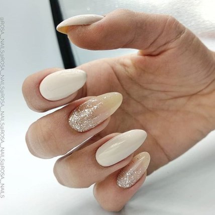 Белый маникюр с желтыми блестками, который подойдет до золотого платья!
