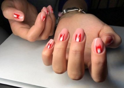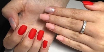 Сочетать тренды нужно правильно. Экспериментируйте, ведь только так можно сделать необычный дизайн маникюра. Например, красный однотонный цвет в комбинации с полупрозрачной матовой основой.
