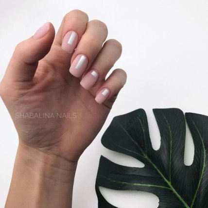 Пора сменить яркий маникюр на полупрозрачную основу. Для того, чтобы сделать дизайн интересным — используйте матовый топ. "Негативное" пространство (negative space) отлично сочетается с крупными блестками и другими аксессуарами.