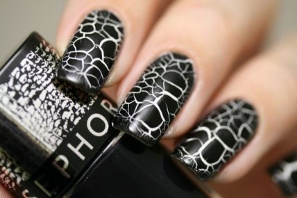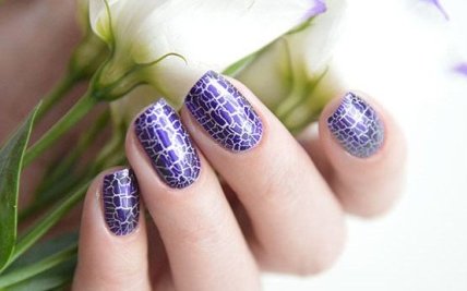 С помощью техники кракелюр можно создать необычный ногтевой дизайн. Она напоминает легкую "потертость" или лак с трещинками. Используйте фольгу разных оттенков. Один цвет должен быть темным, а второй - намного светлее. Комбинируйте сразу два модных тренда - кракелюр и геометрию.