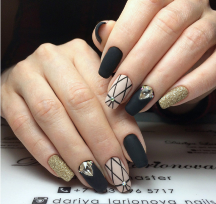 Если вы ищете интересный дизайн маникюра, то обратите внимание на втирку, матовое покрытие, темный цвет, блестки, минимализм и кракелюр.